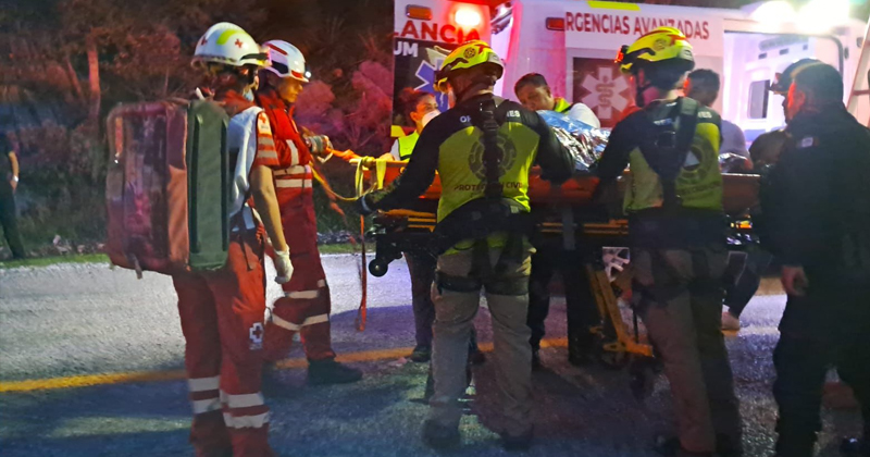 Familia viajaba a Jaumave derrapa, chocan de frente contra poste en el Balcón del Chihue, y caen a barranco, una mujer murió