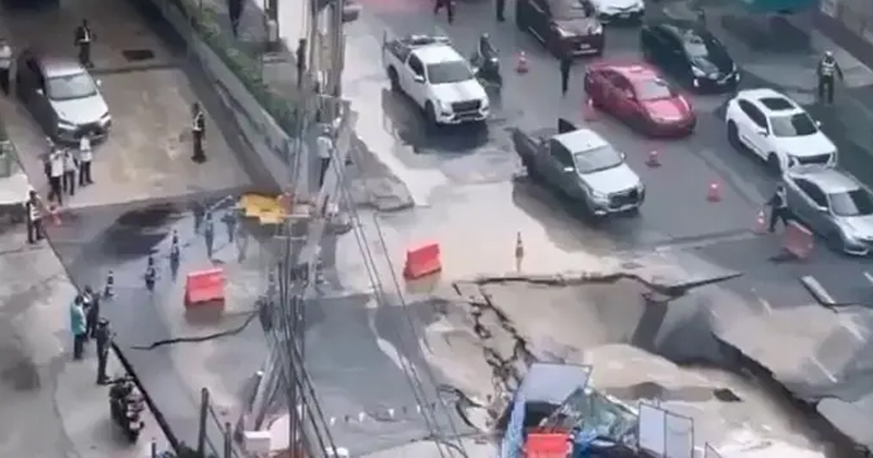 VIDEO: Captan momento en que se forma enorme socavón en Tailandia; obligó la evacuación de un hospital