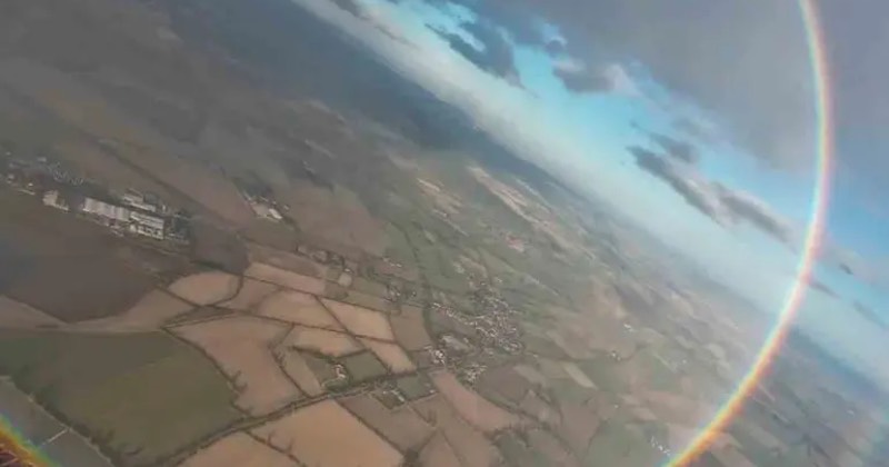 Paracaidistas captan un arcoíris circular; fenómeno que pocos llegan a ver