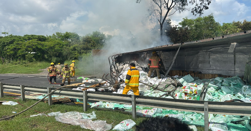 Camión con fertilizante se incendia en Altamira; operador pierde la vida