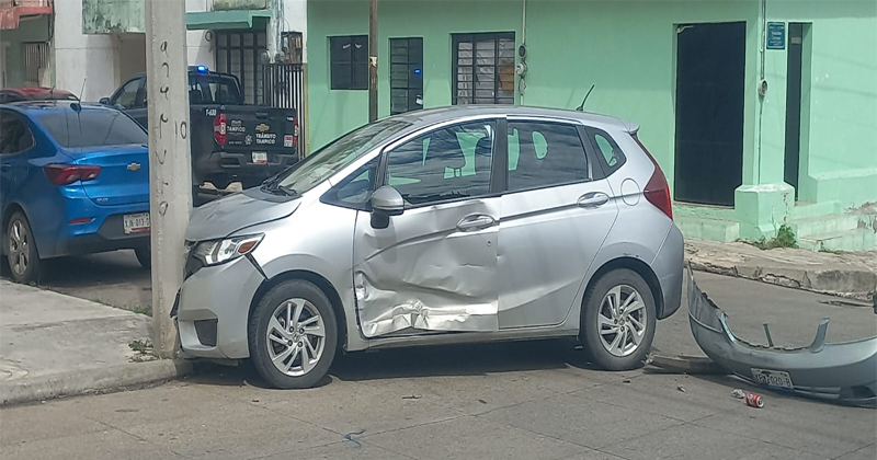 Uno de los carros se estrelló contra un poste de concreto tras ser impactado.