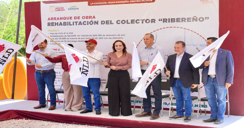 La presidenta municipal, Carmen Lilia Canturosas Villarreal,presidió el arranque de dos obras estratégicas con inversión de 144 mdp en infraestructura que garantiza mejor servicio para las familias de N. Laredo y protege al Río Bravo