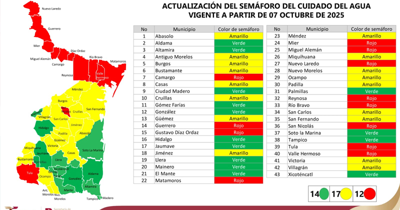 Ponen en “rojo” a doce municipios; falta de agua