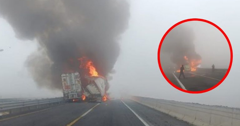 VIDEO: Choque de tráileres provoca fuerte incendio en la autopista Puebla-Orizaba