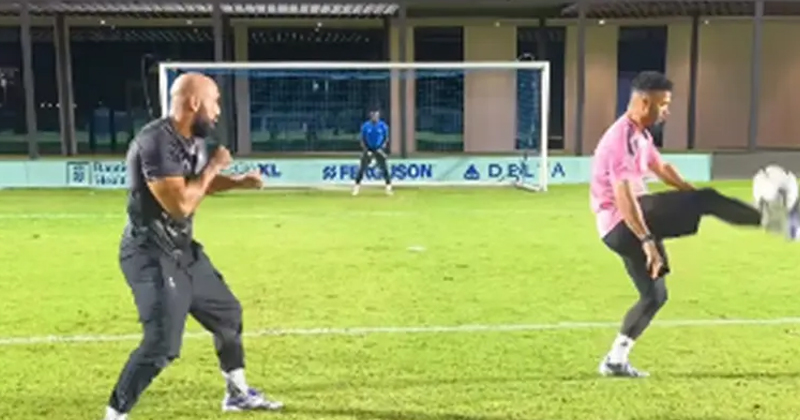 Yassine Cheuko, guardaespaldas de Messi, marcó un golazo de volea tras una asistencia del influencer Jeremy Lynch
