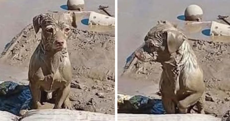 Perrito lleno de lodo espera a su familia tras inundaciones en Poza Rica, no se ha movido desde hace días