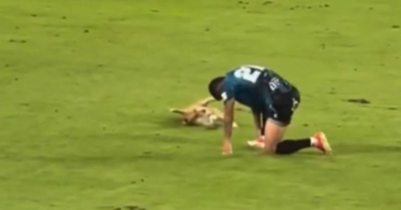 VIDEO: Perrito se roba la atención en un partido de futbol al imitar la caída de un jugador