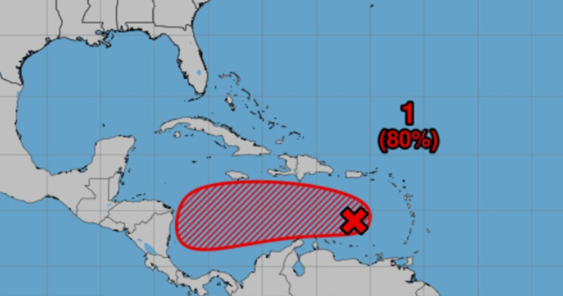El Centro Nacional de Huracanes advierte un 80 % de probabilidad de formación ciclónica en el Caribe oriental mientras la onda AL98 avanza lentamente hacia el centro del mar Caribe.