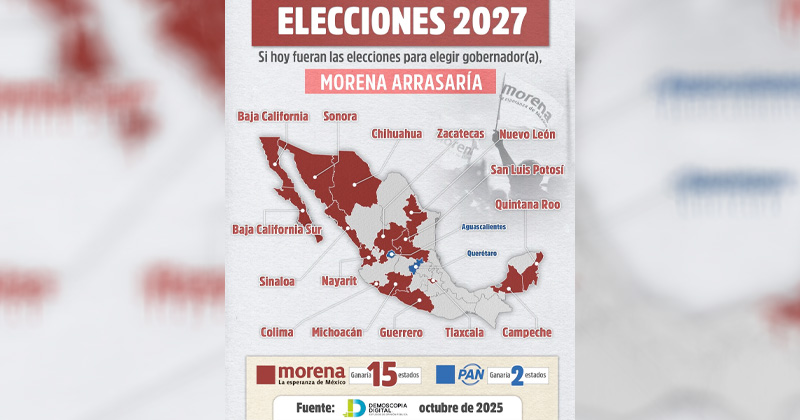 Con base en la encuesta nacional de octubre de 2025, Morena se consolidaría como la fuerza política dominante en el país de cara a los comicios de 2027.