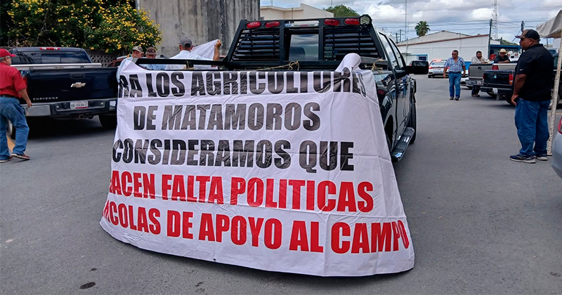 Productores del norte de Tamaulipas bloquearon la carretera Victoria–Matamoros en demanda de mejores precios para granos básicos y subsidios para el campo; la protesta se sumó a un movimiento nacional