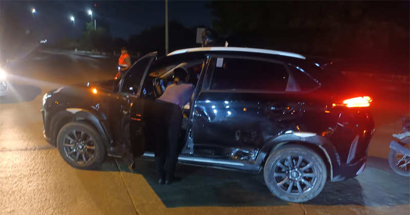 El fuerte percance vial entre dos unidades de reciente modelo, se registró frente a la tienda de autoservicio Grand Estación