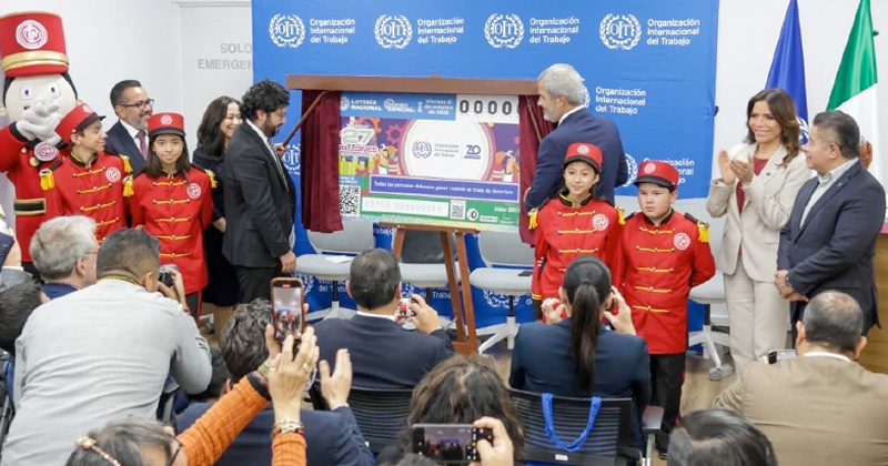 Develan billete de lotería por siete décadas de la Organización Internacional del Trabajo en México