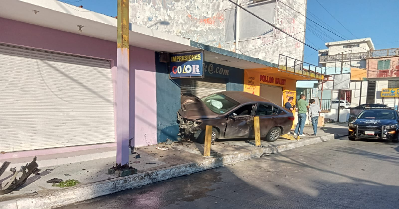 Automóvil choca y queda atorado en un muro entre comercios de la avenida Ayuntamiento