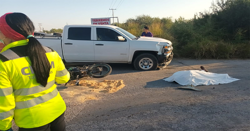 Motociclista muere tras estrellarse contra camioneta de la FGJ en el Ejido El Olivo; era originario de Güémez