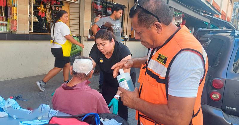 TAMPICO, TAMAULIPAS.- Con fuerte golpe en la cabeza, resultó un hombre de la tercera edad que tropezó y cayó al suelo, cuando caminaba por la zona de los mercados municipales de Tampico.