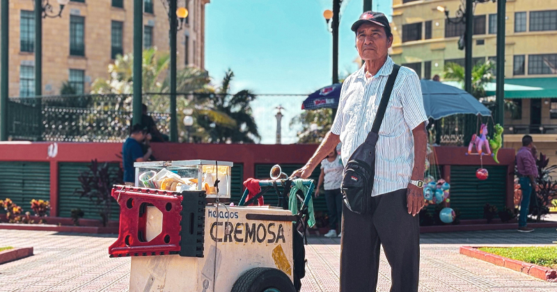 Su jornada empieza temprano. Baja en la colonia Cascajal para recoger el carrito asignado por Cremosa, y a pie avanza hacia el primer cuadro de la ciudad. No necesita más publicidad que su corneta, ese sonido clásico que anuncia que Don Antonio ya está cerca.