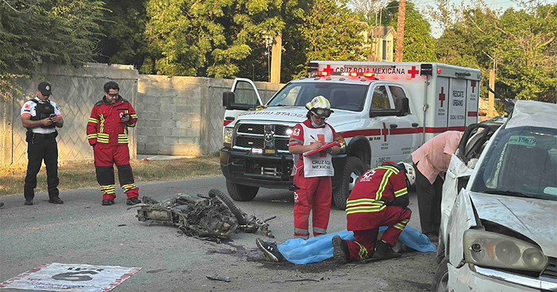 Las investigaciones preliminares indican que un automóvil Chevrolet Malibu, que circulaba de oriente a poniente, invadió el carril contrario y colisionó de frente contra una motocicleta en la que viajaban dos jóvenes.
