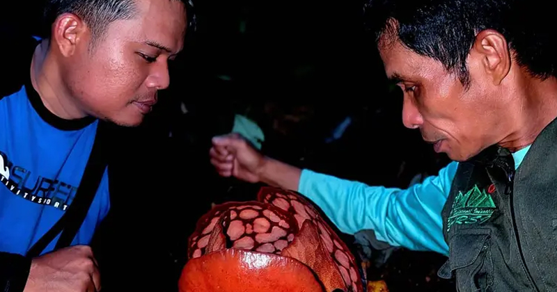 El biólogo indonesio Septian “Deki” Andrikithat rompió en llanto al encontrar, después de 13 años de expediciones, la esquiva Rafflesia hasseltii, considerada una de las flores más raras y sorprendentes del planeta.