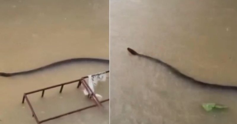 Fue en dicho lugar en donde habitantes de la localidad captaron en video la aparición de una serpiente de gran longitud, la cual se encontraba nadando a través de una de las calles que quedo cubierta por el agua tras las fuertes lluvias.