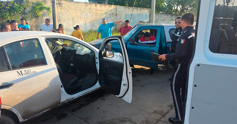 TAMPICO, TAMAULIPAS.- Tres personas resultaron lesionadas en fuerte choque entre una camioneta y un carro del transporte público, ocurrido en la colonia Morelos.