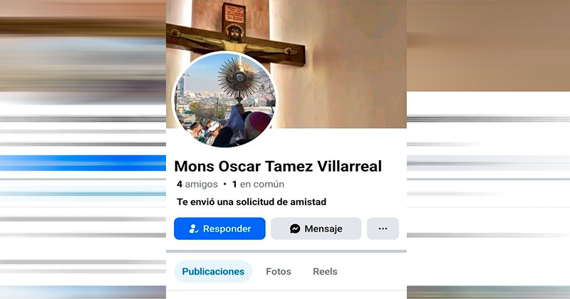 CIUDAD VICTORIA, TAMAULIPAS.- La suplantación de identidad volvió a alcanzar nuevamente al obispo de la Diócesis de Ciudad Victoria, Óscar Efraín Tamez Villarreal, quien denunció a mediados de esta semana la aparición de un nuevo perfil falso en Facebook utilizando su nombre e imagen.