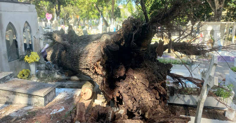 El pino de varios metros de largo era muy antiguo y al parecer quedó debilitado tras las rachas de viento registradas la madrugada del lunes.