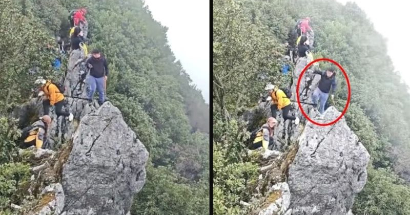 🇨🇳 | Momento aterrador: un turista en China cayó de un acantilado en la montaña Huaying mientras intentaba tomarse una selfie; sobrevivió milagrosamente. pic.twitter.com/YvHP2j3YG8