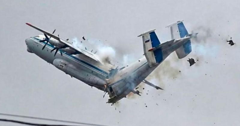 🇷🇺 | Un avión ruso de transporte militar An-22 de la era soviética se partió en dos en el aire en la región de Ivánovo, en Rusia, murieron las siete personas a bordo. pic.twitter.com/BBVuOnClrW