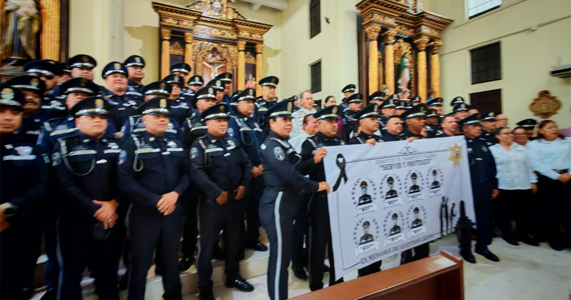 TAMPICO, TAMAULIPAS.- En un gesto solemne y directo, elementos de la Secretaría de Tránsito y Vialidad de Tampico recordaron a siete agentes caídos durante la misa de acción de gracias realizada por su día.