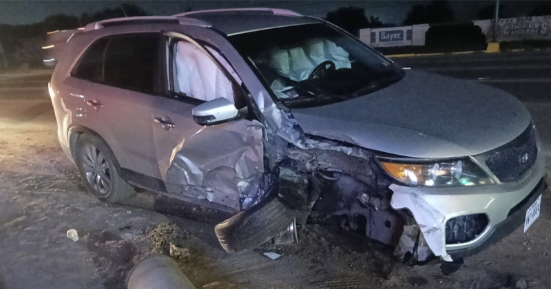 ALTAMIRA, TAMAULIPAS.- Una camioneta Kia Sorento terminó destrozada y abandonada tras impactar un poste de la CFE durante la madrugada de este sábado en la Avenida de la Industria de Altamira.