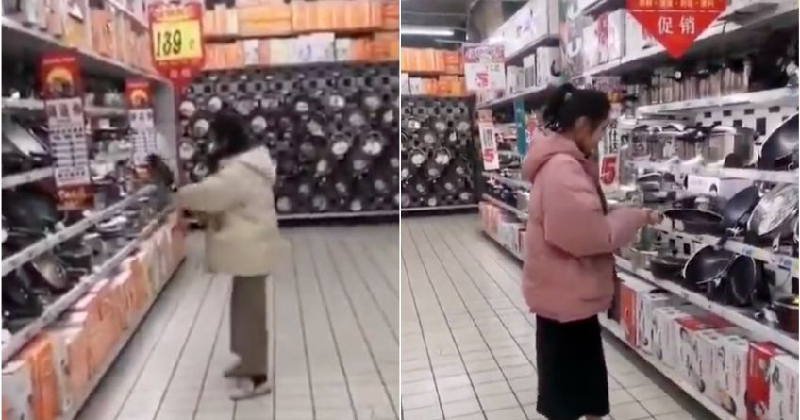 Insólita escena en supermercado: clientas “ponen a prueba” sartenes de manera poco convencional