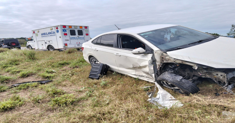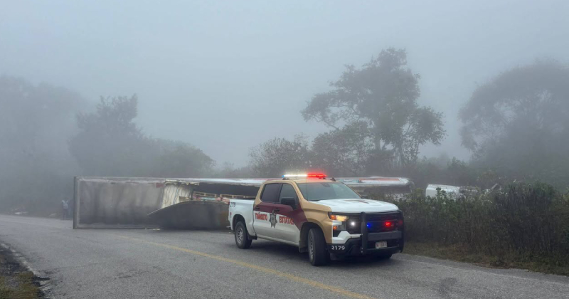 Se trató de un tractocamión marca Kenworth, acoplado a un semirremolque, el cual quedó fuera de la cinta asfáltica tras la volcadura