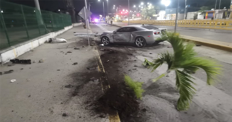 Un vehículo Chevrolet Camaro, color gris, con placas de circulación XLB296D, el cual era conducido a exceso de velocidad por Alejandro «N», perdió el control y se proyectó hacia el camellón central y el área comercial.