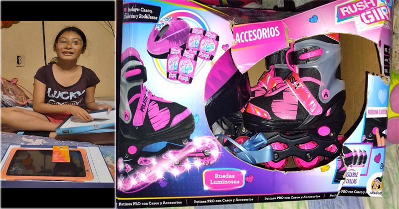 Tras la difusión de su historia y de la carta que escribió a Santa Claus —una carta que conmovió por su sencillez y honestidad—, la respuesta no tardó en llegar. Fueron tres donaciones directas que marcaron una gran diferencia: medicamentos indispensables para su tratamiento, una tablet que le ayudará en la escuela y en sus terapias, y unos patines que provocaron una de las sonrisas más grandes que Selene ha tenido en mucho tiempo.