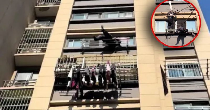 En el video publicado en redes sociales se observa que el guardia se ató una manguera contra incendios alrededor de la cintura y bajó cuidadosamente un nivel para llegar al perchero donde se encontraba el adulto mayor. El rescatista fue identificado como Zhang Wei, de 32 años, jefe del equipo de seguridad del complejo residencial.