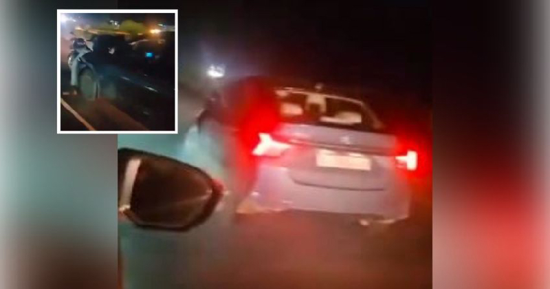 Momentos antes de que lograran detener al automóvil implicado en el referido accidente, se puede ver que tras disminuir la velocidad el motociclista cae de la unidad y es arrollado parcialmente por el automóvil hasta quedar tirado sobre el pavimento.