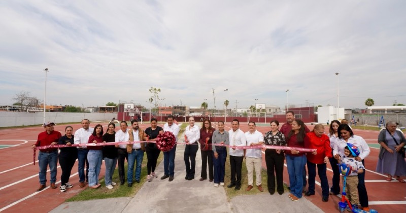 La presidenta municipal, Carmen Lilia Canturosas Villarreal, acompañada por vecinas y vecinos de la colonia Nueva Era, inauguró ambos centros deportivos que fueron rehabilitados de manera integral, con el objetivo de ofrecer espacios seguros, funcionales y dignos para que niñas, niños y jóvenes puedan convivir, ejercitarse y desarrollarse en un entorno sano.
