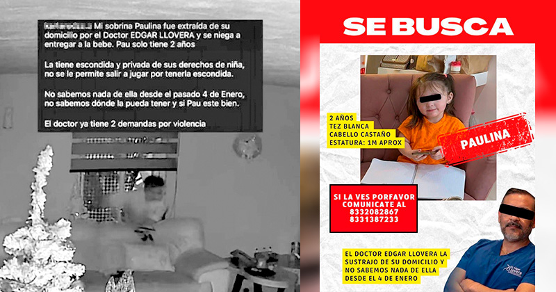 “Ayúdenme a compartir, por favor. Mi niña fue extraída por el doctor Edgar Llovera de mi domicilio y está negado a entregármela. La tiene escondida y privada de todos sus derechos como pequeña”, pide en redes sociales Edith Garod.