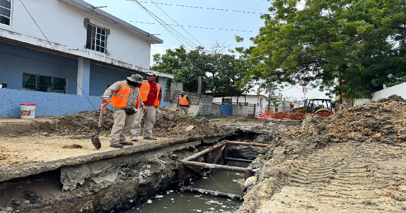 TAMPICO, TAMAULIPAS.- Con el objetivo de mejorar las condiciones sanitarias y brindar un servicio eficiente a la población, COMAPA SUR lleva a cabo la rehabilitación de la línea general de drenaje en la colonia Del Bosque, al norte de la ciudad de Tampico.