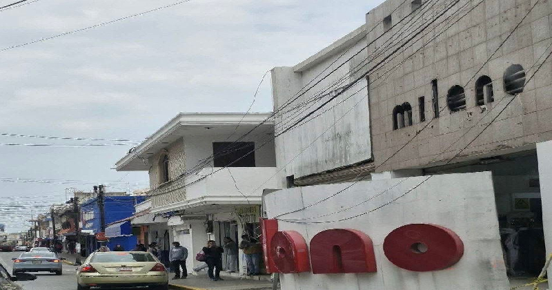 CIUDAD MADERO, TAMAULIPAS.- Las fuertes rachas de viento provocadas por el frente frío número 27, derribaron el letrero de la tienda de ropa Milano en la zona centro de Ciudad Madero.