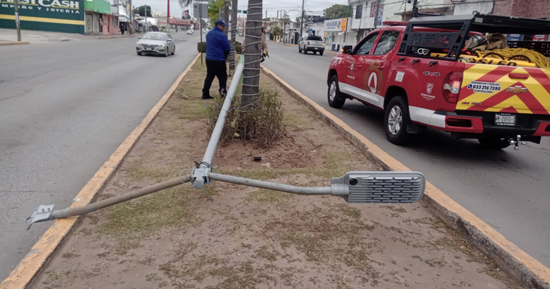Las rachas de viento también tumbaron un poste de alumbrado público en la avenida Álvaro Obregón, casi esquina con calle Sarabia en la zona centro de Madero.