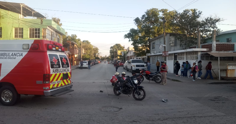 CIUDAD MADERO, TAMAULIPAS.- Una mujer resultó con algunas lesiones y fue trasladada de urgencia a un hospital, al impactarse la motocicleta que tripulaba contra una camioneta en transitado cruce de Ciudad Madero, hecho que movilizó a paramédicos y elementos de tránsito.