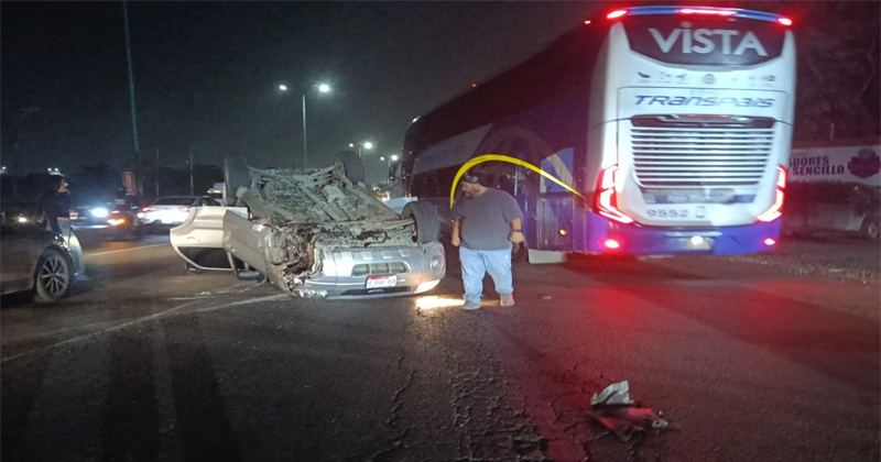 La unidad avanzó sin control y terminó volcada a media avenida arribando, al sitio paramédicos que le brindaron los primeros auxilios al operador y lo trasladaron a un hospital, mientras que elementos de tránsito acordonaron el área para proceder a retirar al vehículo colisionado.