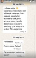 En otro mensaje, ahora con María Alejandra «N», la denunciante le envió saludos en 2023; es decir, dos años después de las supuestas agresiones. Al parecer el cantante no le respondió y la víctima intentó contactarlo de nuevo.