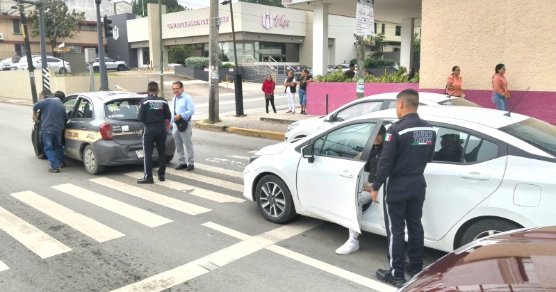 Un pasajero de un taxi resultó lesionado, al ser impactada por alcance la unidad en la que viajaba, en la avenida Hidalgo en Tampico.
