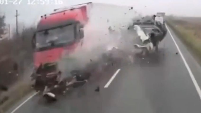 En un video captado por la cámara de seguridad de un vehículo y posteriormente difundido en redes sociales se puede ver el momento exacto del accidente, mismo que sucedió luego de que el minibús en donde viajaban los hinchas invadiera el carril contrario, impactando al camión con tal fuerza que el vehículo quedo pulverizado al instante.