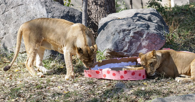 Durante el fin de semana, ejemplares como osos y leones recibieron dinámicas con temática romántica, acompañadas de sus snacks favoritos, entre ellos zanahoria, manzana, plátano, pan y carne, integrados en presentaciones diseñadas para estimular su comportamiento natural.