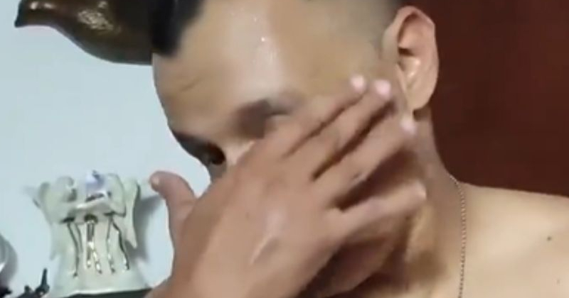 En el video se observa al hombre cubierto solo con una toalla de la cintura para abajo, mientras es grabado por su esposa, quien le reclama la infidelidad. Ella afirma que habría preferido que el engaño fuera con otra mujer, llegando incluso a decir que lo aceptaría; pero reprocha profundamente que fuera con un hombre.