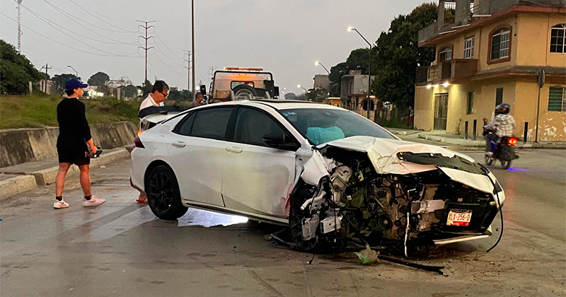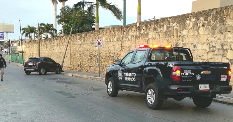 Camioneta de lujo choca con poste en Tampico