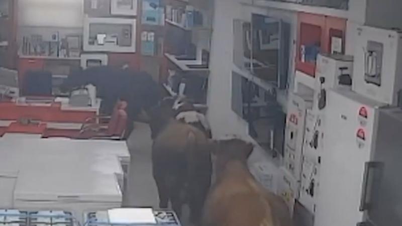 Entre electrodomésticos relucientes, algunos en exhibición y otros empacados, los animales sembraron el caos, hicieron algunos destrozos como si se encontraran en un corral improvisado. El video no permite ver qué fue lo que las frenó después, pero se apreciar cómo retroceden y salen aprisa de la tienda.